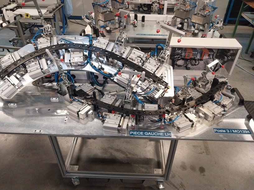6 postes et 15 palettes d’assemblage pour pièces de carrosserie de poids-lourds. Montage de clips, clips sapin, agrafe, écrou tôle, rivet, insert …